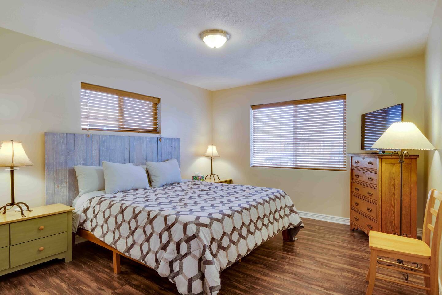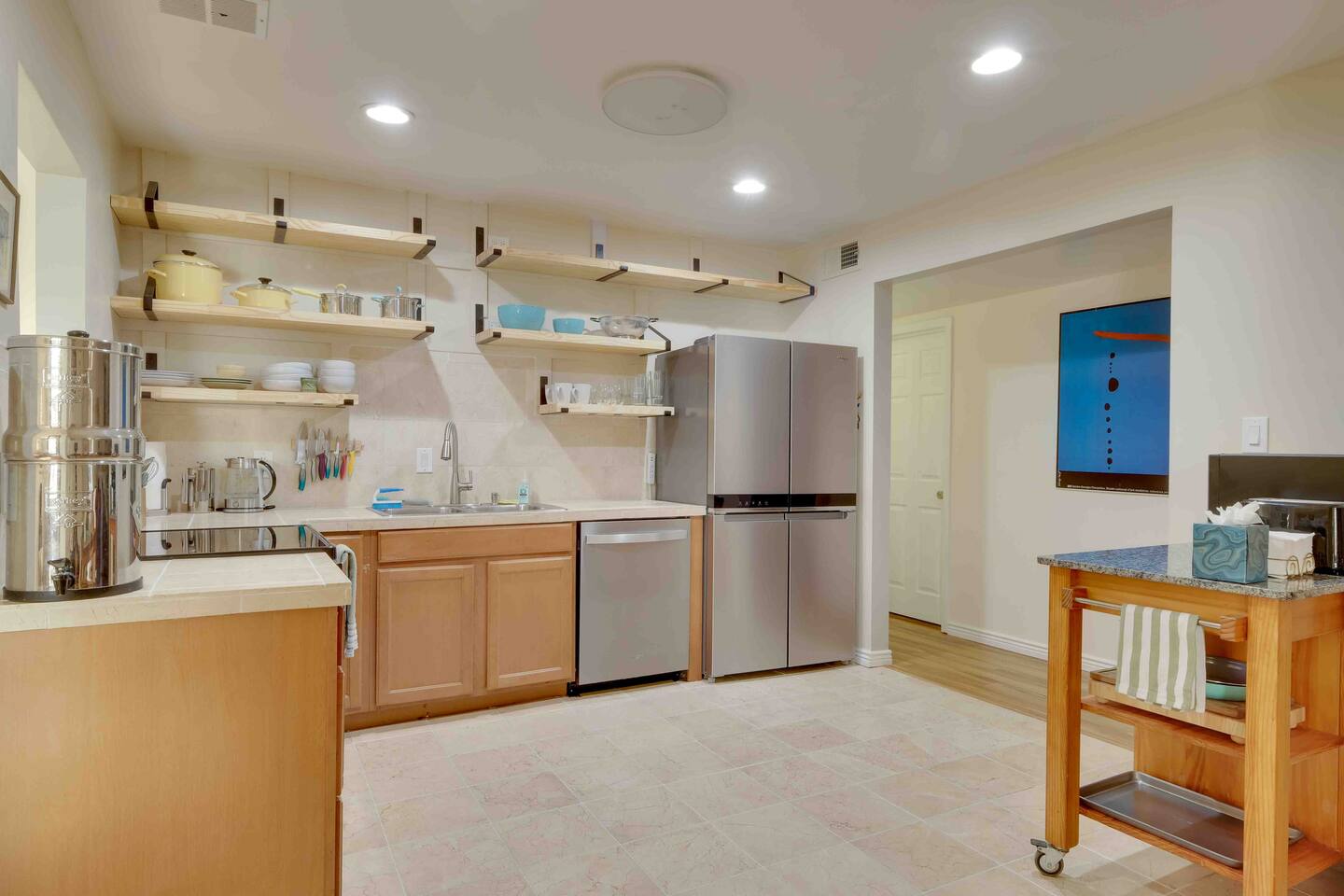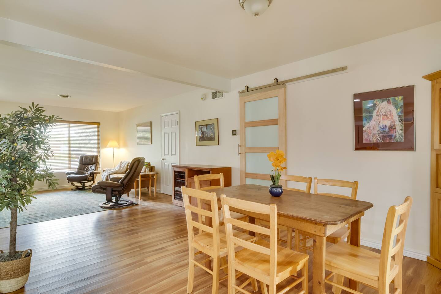 Guests have full access to the home, with the exception of the garage and the room adjacent to the laundry room and tv room.